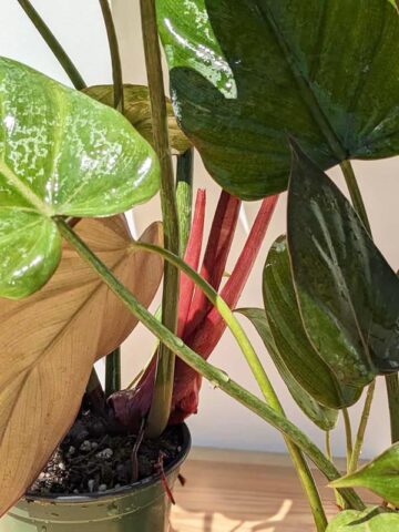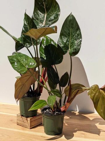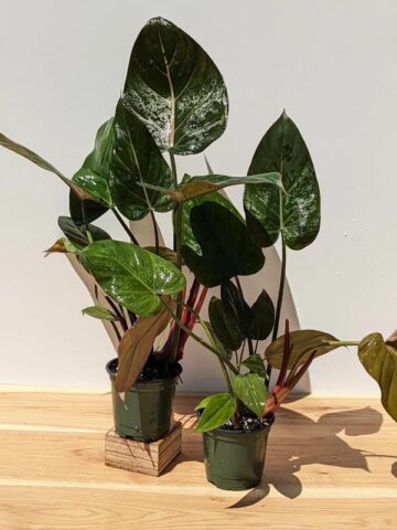 Philodendron are very easy to grow tropical plants that require little care indoors or out. Like other aroids, many species of Philodendron can be grown as houseplants, or outdoors in mild climates. They thrive in moist soils with high organic matter and grow best when provided with a mossy post or burlap wrapped pole to climb. Philodendron plants can be grown in pots, hanging baskets or outdoors as a ground cover or beautiful tree wrap. Indoors plants thrive at temperatures between 65°-90°F and in lower light conditions than other house plants. In the ground or up an arbor, Philodendrons get big and are often unrecognizable from their potted juvenile state. They add a wonderfully tropical accent to any well-lit space or cascading from your favorite hanging planter. In very cold zones a containerized Philodendron can be brought inside for the winter months. Be sure to avoid frost and freezing temperatures.
