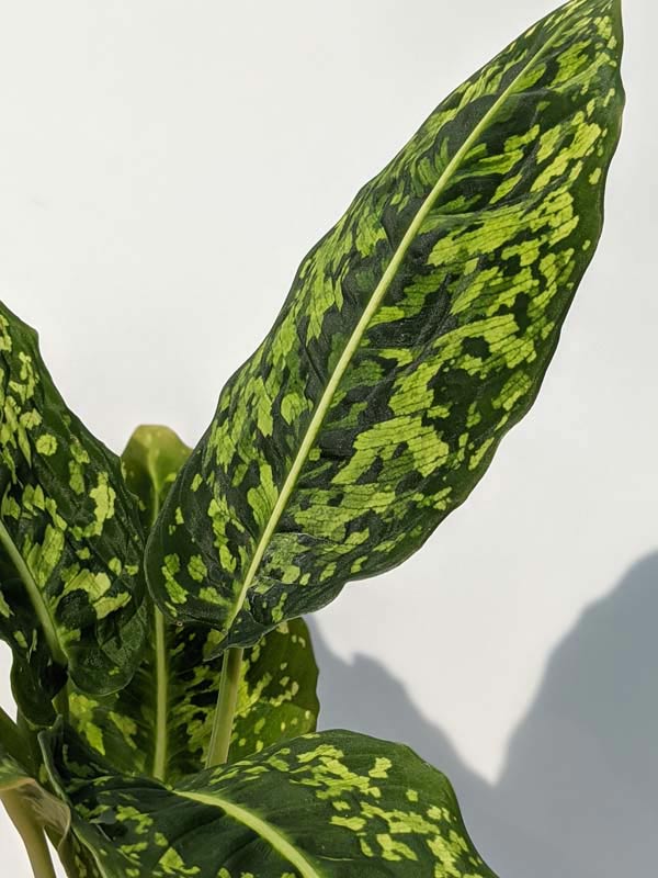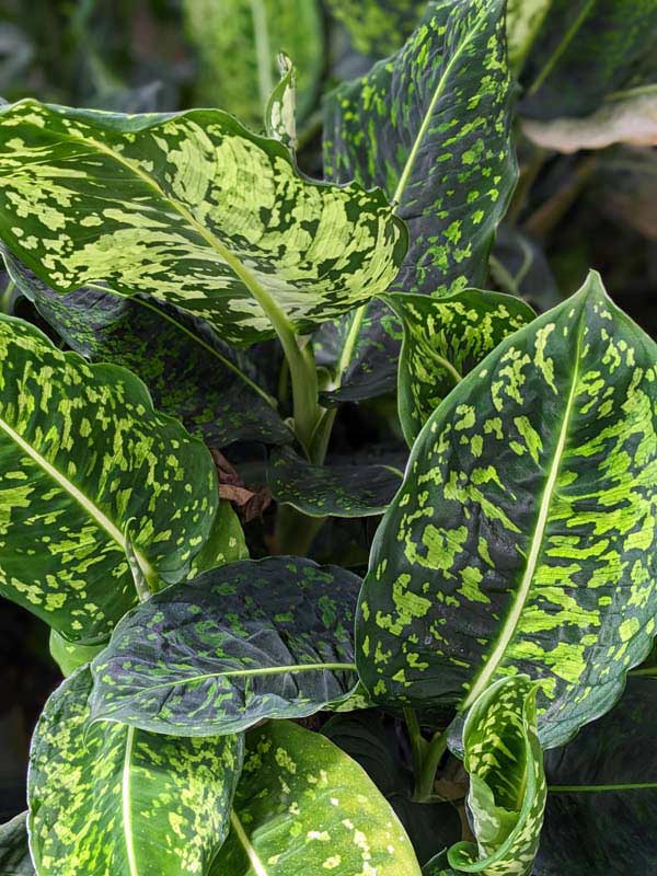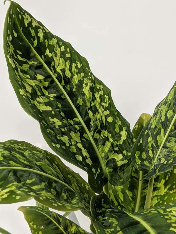 Dieffenbachia Reflector – One of the easiest of all houseplants to grow. This highly decorative Dieffenbachia is simply stunning with its colorfully speckled leaves. This variety prefers shade and reaches around two feet in height making it a perfect indoor house plant or container plant for the patio. Easy to care simply water when dry. This beautiful variety produces colorful offsets producing a fuller plant in just a few months. These are very healthy tropical plants with well established root systems.