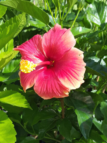 A profuse bloomer, outstanding gradient pink to peach petals lay gently back allowing the brilliant colors of the pistil and anthers to step out into view. In warmer climates, flowering is a nonstop show in the tropical garden.