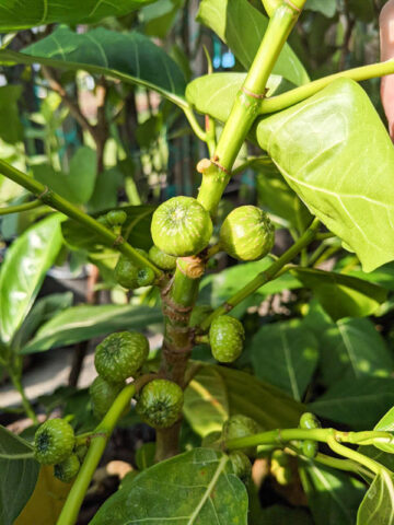 Fistulosa Lime Variegated is a rare but easy to grow ficus tree. We feel it is an excellent choice for indoor container growing. Unlike other ficus, Fistulosa does not have roots constantly emerging from the trunk which makes for a cleaner plant with far less maintenance. The evergreen, glossy leaves reach about two feet in length and ornamental figs form on the trunk when the plant is only about three feet in height. We have been lucky enough to acquire four varieties of this plant which are occasionally offed for sale: Albo, Lime and Lemon variegated along with jungle green.