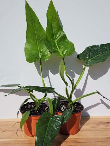 Philodendron are very easy to grow tropical plants that require little care indoors or out. Like other aroids, many species of Philodendron can be grown as houseplants, or outdoors in mild climates. They thrive in moist soils with high organic matter and grow best when provided with a mossy post or burlap wrapped pole to climb. Philodendron plants can be grown in pots, hanging baskets or outdoors as a ground cover or beautiful tree wrap. Indoors plants thrive at temperatures between 65°-90°F and in lower light conditions than other house plants. In the ground or up an arbor, Philodendrons get big and are often unrecognizable from their potted juvenile state. They add a wonderfully tropical accent to any well-lit space or cascading from your favorite hanging planter. In very cold zones a containerized Philodendron can be brought inside for the winter months. Be sure to avoid frost and freezing temperatures.