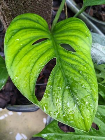 Growth Rate: Medium Light: 60-85% Soil: Rich Organic Mix Fertilizer: Slow Time Released Water: When Dry to Touch Dislikes: Soggy Soil Likes: 65-90°F Outdoor Zone: 9b-10 Pot Size: 6″-24″ w/Drain Holes Indoors: Locate Near Natural Light Faux Light: Grow Light Full Spectrum Genera: Araceae/Monstera