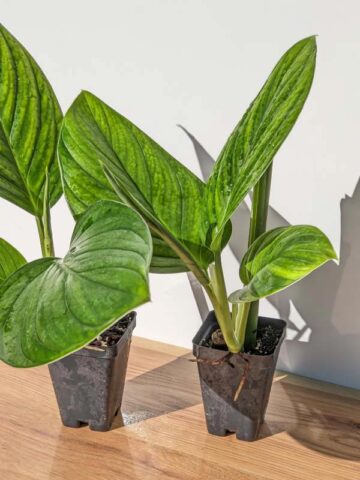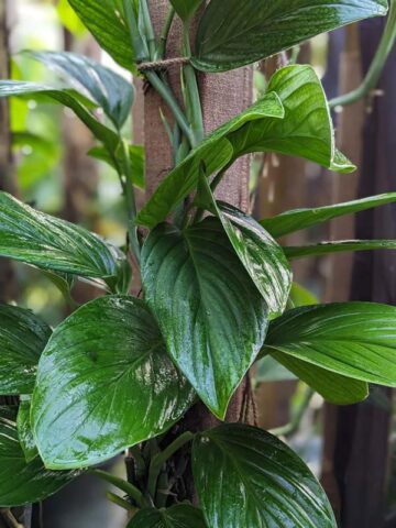Monstera are very easy to grow tropical plants that require little care indoors or out. Like other aroids, many species of Monstera can be grown as houseplants, or outdoors in mild climates. They thrive in moist soils with high organic matter and grow best when provided with a mossy post or burlap wrapped pole to climb. Monstera plants can be grown in pots, hanging baskets or outdoors as a ground cover or beautiful tree wrap. Indoors plants thrive at temperatures between 65°- 90°F and in lower light conditions than other house plants. In the ground or up an arbor, Monsteras get big and are often unrecognizable from their potted juvenile state. They add a wonderfully tropical accent to any well-lit space or cascading from your favorite hanging planter. In very cold zones a containerized Monstera can be brought inside for the winter months. Be sure to avoid frost and freezing temperatures.