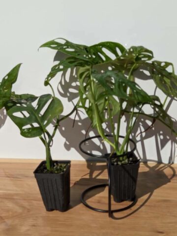 Growth Rate: Medium Light: 60-85% Soil: Rich Organic Mix Fertilizer: Slow Time Released Water: When Dry to Touch Dislikes: Soggy Soil Likes: 65-90°F Outdoor Zone: 9b-10 Pot Size: 6″-24″ w/Drain Holes Indoors: Locate Near Natural Light Faux Light: Grow Light Full Spectrum Genera: Araceae/Monstera