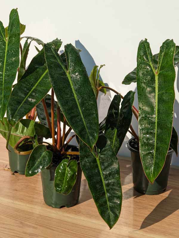 Philodendron Billietiae Croat A colorful climbing long-stem philodendron with quite the root system. Leaves of this philodendron reach 3 ft in length and 8 to 10 in in with supported by rigid, upright burnt orange colored stems. This variety can be found at most tropical garden conservatories around the U.S. Very popular.