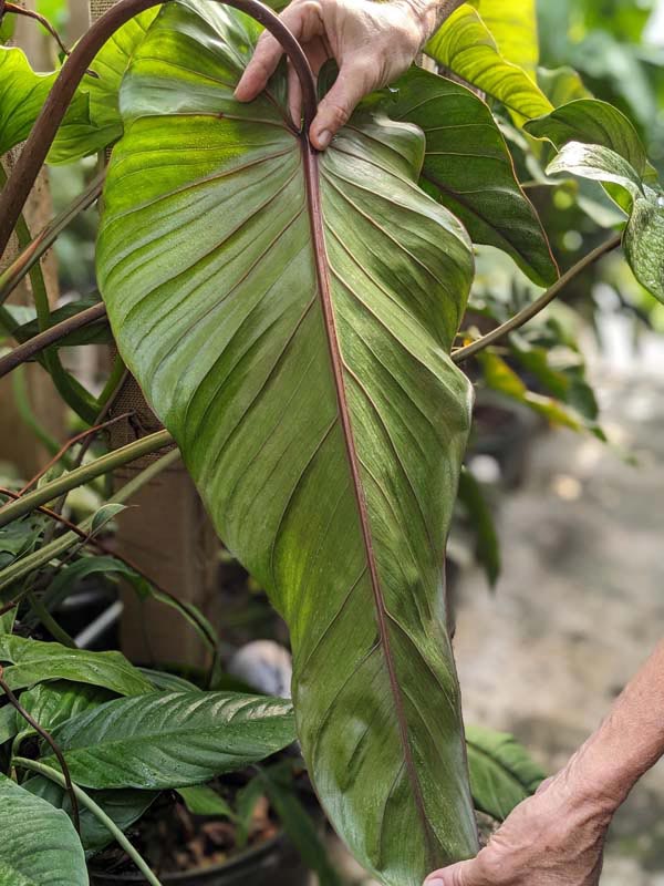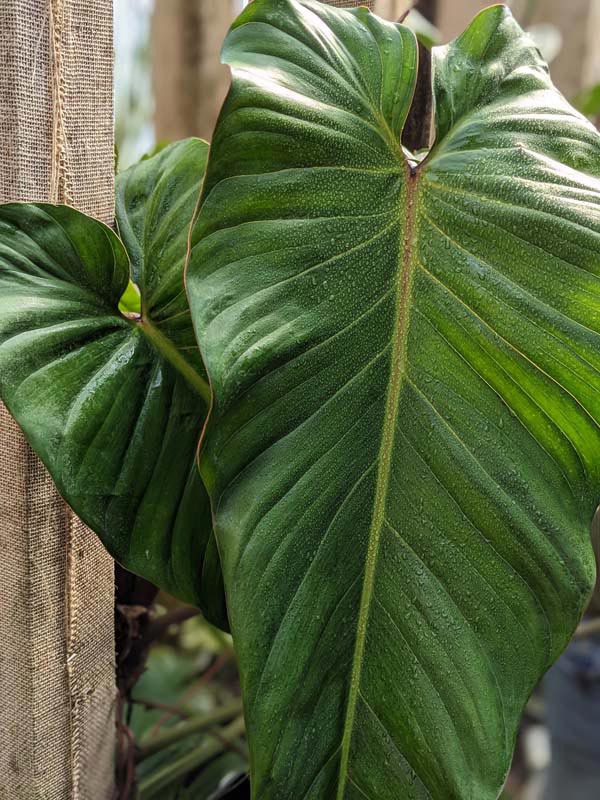 Philodendron are very easy to grow tropical plants that require little care indoors or out. Like other aroids, many species of Philodendron can be grown as houseplants, or outdoors in mild climates. They thrive in moist soils with high organic matter and grow best when provided with a mossy post or burlap wrapped pole to climb. Philodendron plants can be grown in pots, hanging baskets or outdoors as a ground cover or beautiful tree wrap. Indoors plants thrive at temperatures between 65°-90°F and in lower light conditions than other house plants. In the ground or up an arbor, Philodendrons get big and are often unrecognizable from their potted juvenile state. They add a wonderfully tropical accent to any well-lit space or cascading from your favorite hanging planter. In very cold zones a containerized Philodendron can be brought inside for the winter months. Be sure to avoid frost and freezing temperatures.