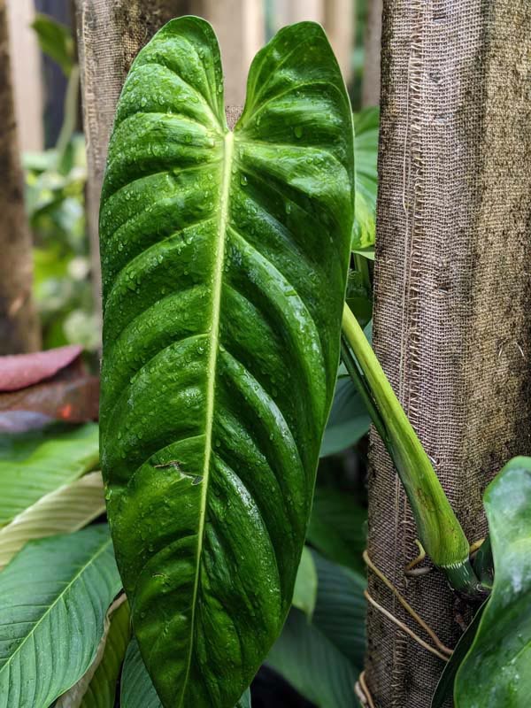 Philodendron are very easy to grow tropical plants that require little care indoors or out. Like other aroids, many species of Philodendron can be grown as houseplants, or outdoors in mild climates. They thrive in moist soils with high organic matter and grow best when provided with a mossy post or burlap wrapped pole to climb. Philodendron plants can be grown in pots, hanging baskets or outdoors as a ground cover or beautiful tree wrap. Indoors plants thrive at temperatures between 65°-90°F and in lower light conditions than other house plants. In the ground or up an arbor, Philodendrons get big and are often unrecognizable from their potted juvenile state. They add a wonderfully tropical accent to any well-lit space or cascading from your favorite hanging planter. In very cold zones a containerized Philodendron can be brought inside for the winter months. Be sure to avoid frost and freezing temperatures.
