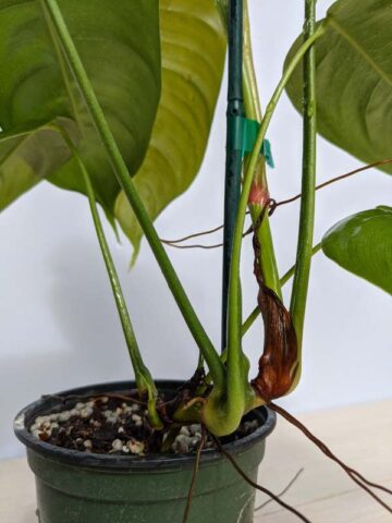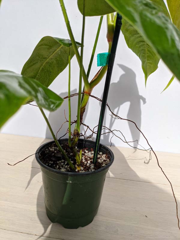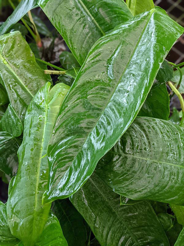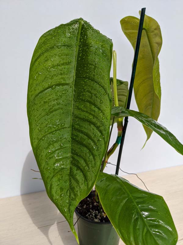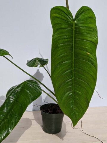 Before leaving, Tenue Philodendron plants are inspected, watered, and pruned. Larger plants, generally those that ship in 8″ pots or with totems, will be topped to 36″ or 48″ overall, depending on the variety, if necessary to facilitate shipping. Your new plants’ pot is then bagged to ensure that the soil stays in the pot and not loose in the box. Plants are tissue or kraft paper wrapped and secured in place with natural biodegradable peanuts.