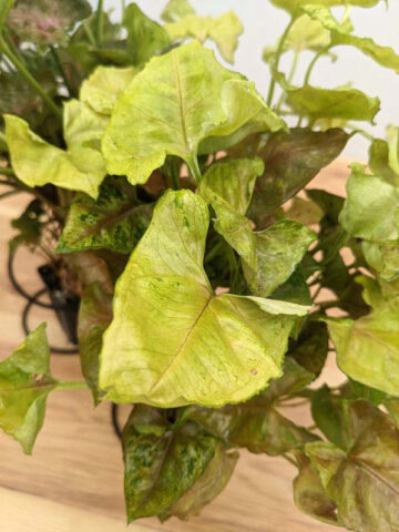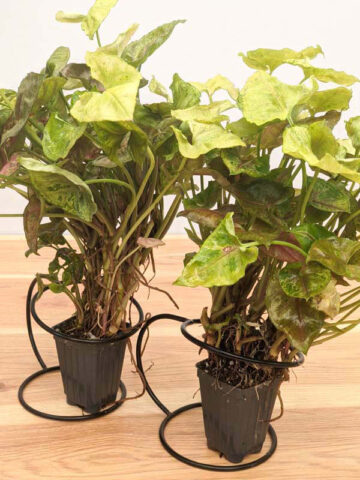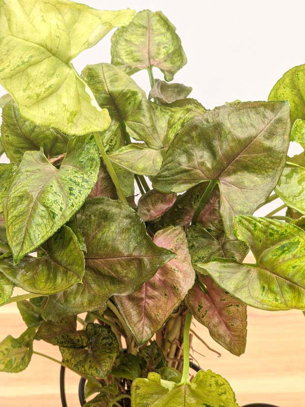 Syngonium are very easy to grow tropical plants that require little care indoors or out. They grow very fast, for a nice bushy appearance remove the running shoots when they appear, this usually causes the plant to send out off-sets to produce a fuller pot. Like other aroids, many species of Syngonium can be grown as houseplants, or outdoors in mild climates. They thrive in moist soils with high organic matter and grow best when provided with a mossy post or burlap wrapped pole to climb. Syngonium plants can be grown in pots, hanging baskets or outdoors as a ground cover or beautiful tree wrap. Indoors plants thrive at temperatures between 55°- 80°F and in lower light conditions than other house plants. In the ground or up an arbor, Syngoniums get big and are often unrecognizable from their potted juvenile state. They add a wonderfully tropical accent to any well-lit space or cascading from your favorite hanging planter.