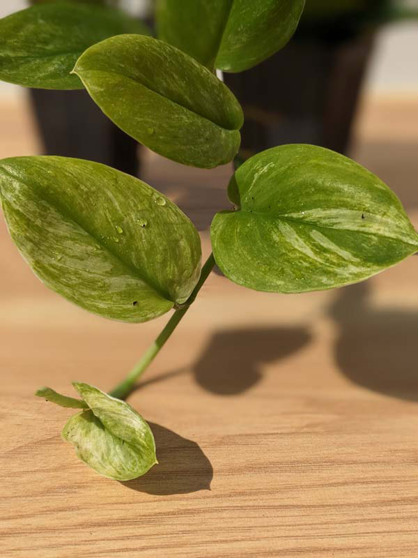 Scindapsus Treubii Mint Variegata **Description Soon** Scindapsus plants are very easy to grow and perform well indoors in a small pot, tertium or on burlap wrapped totem.